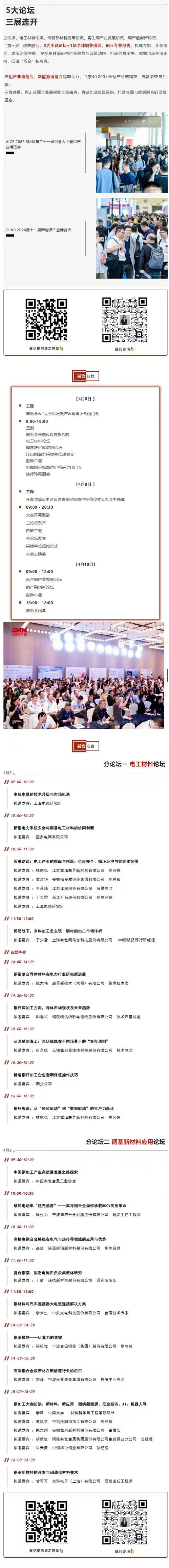 2025 年美国铜半成品加税改写贸易逻辑,精矿紧缺、废铜供应链扰动推高成本,新产能难抵原料争夺。2026 年铜产业将迎原料、加工、消费深度再平衡,本次大会将聚焦铜行业趋势解析与机遇探索。