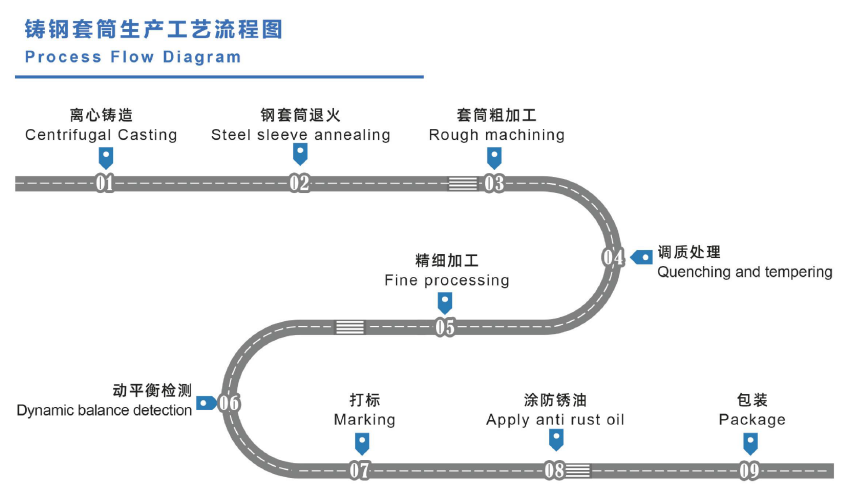 铸钢套筒生产工艺流程图:
