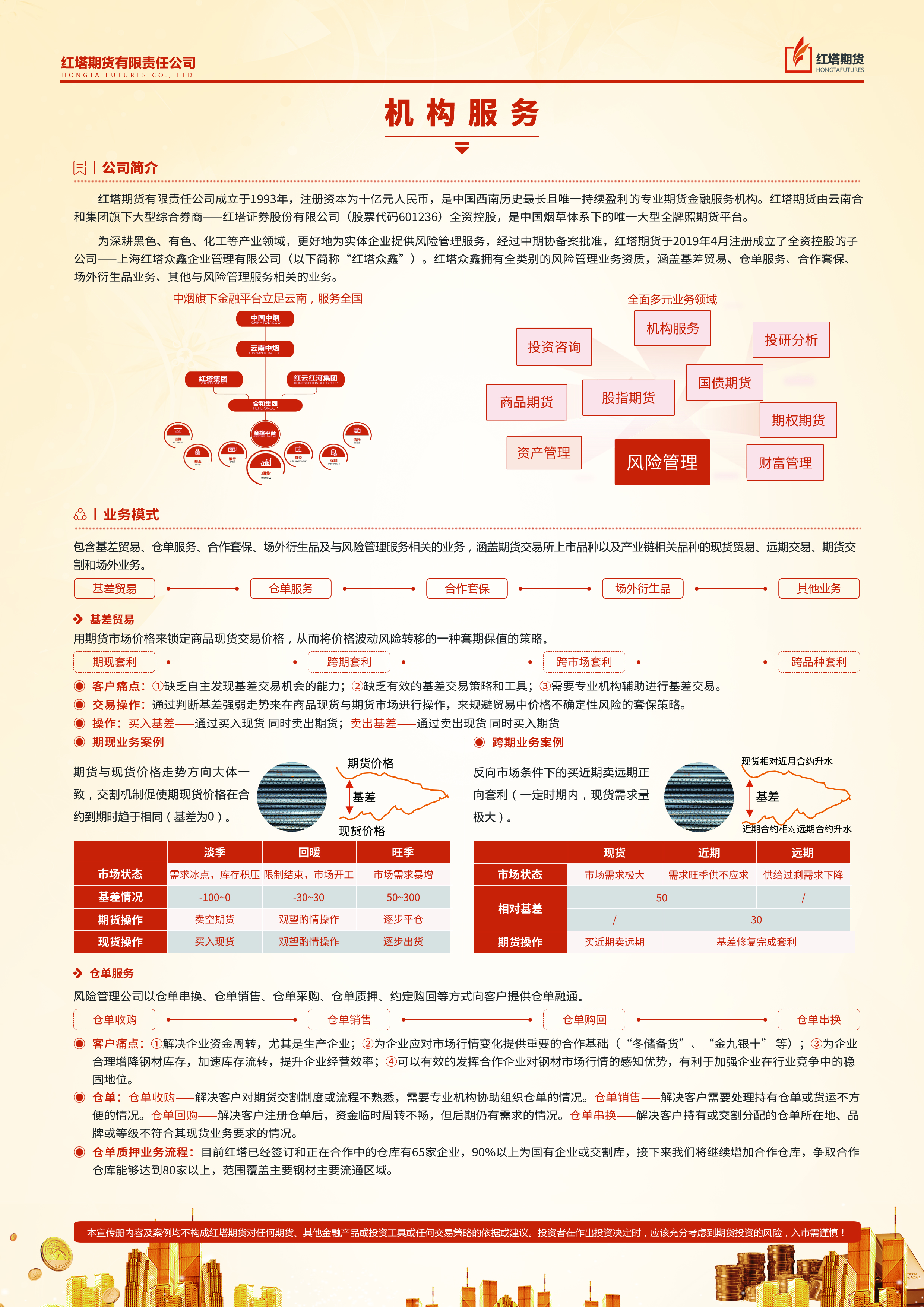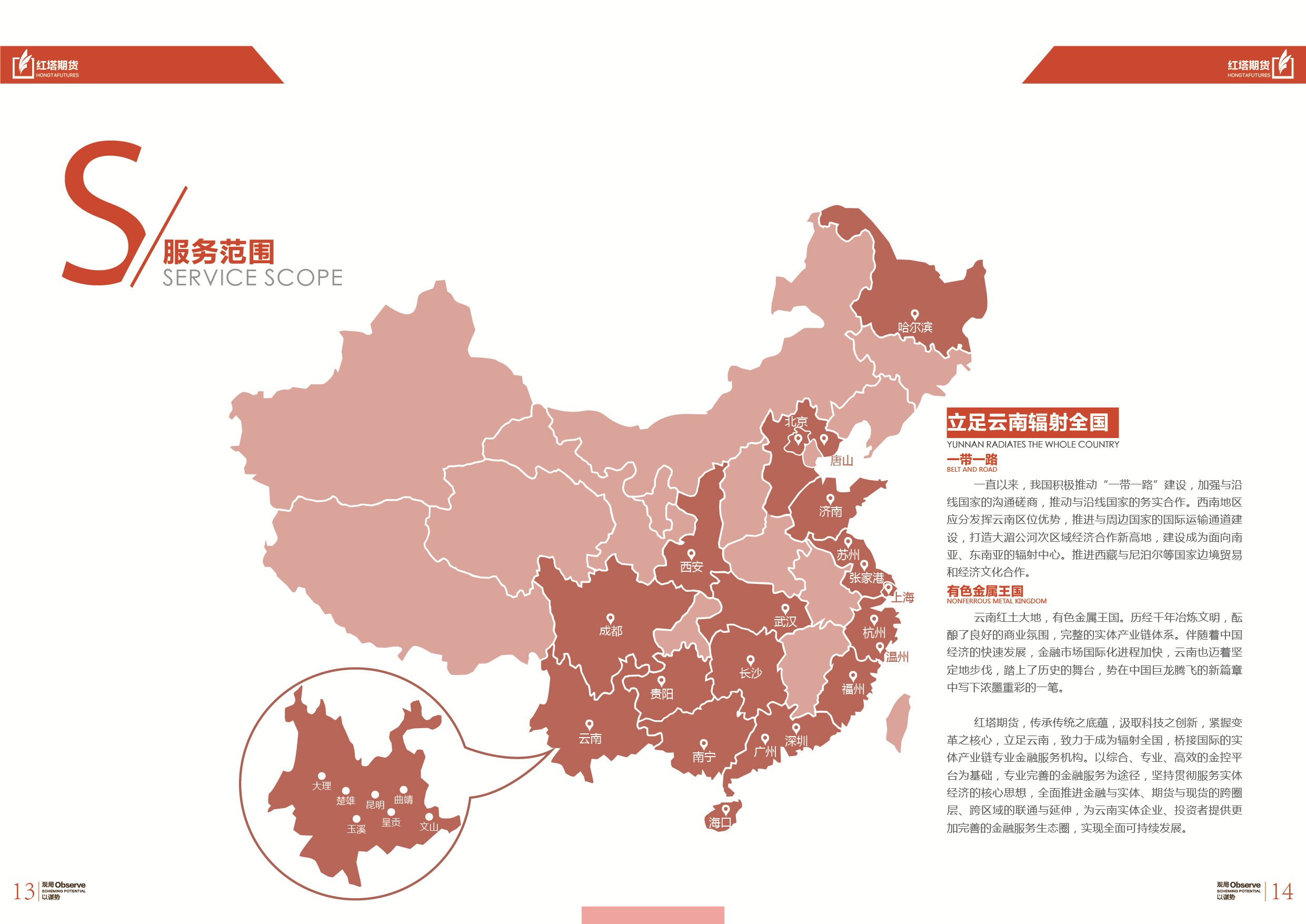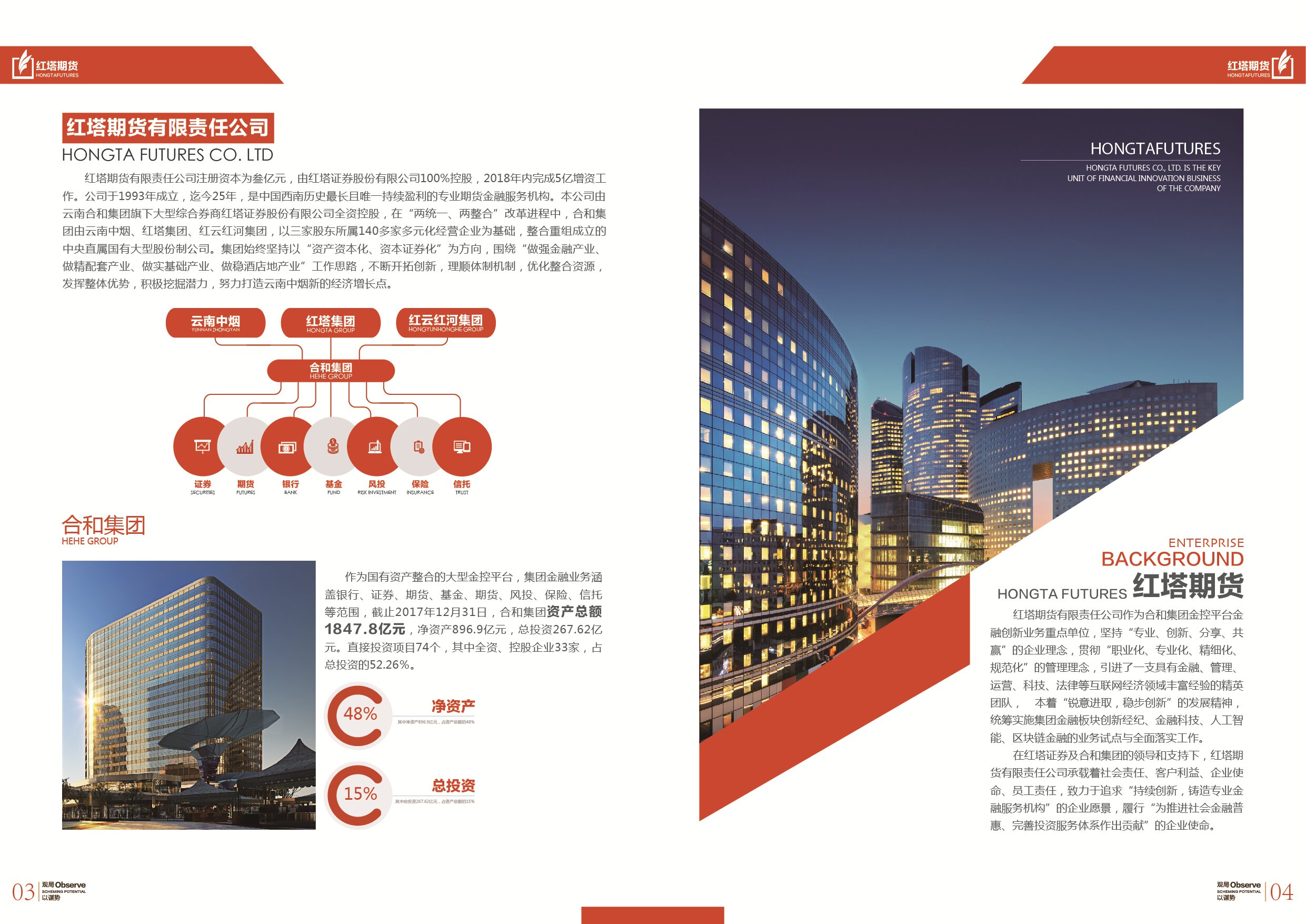 红塔期货有限责任公司成立于1993年,注册资本为十亿元人民币,是中国西南历史最长且唯一持续盈利的专业期货金融服务机构。红塔期货由云南合和集团旗下大型综合券商--红塔证券股份有限公司(股票代码601236)全资控股,是中国烟草体系下的唯一大型全牌照期货平台。