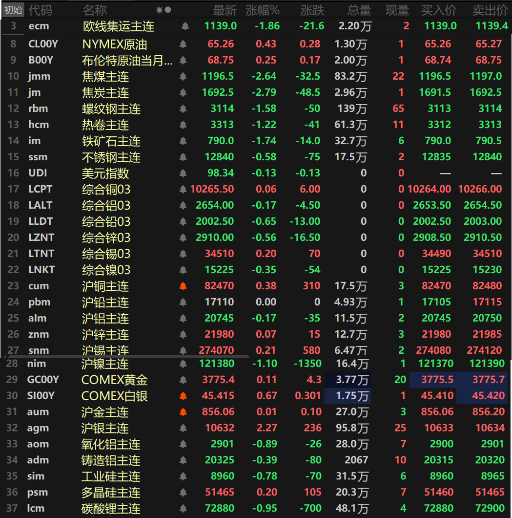 此外,碳酸锂主连跌0.95%,多晶硅主连涨0.2%,工业硅主连跌0.78%。欧线集运主连跌1.86%报1139。