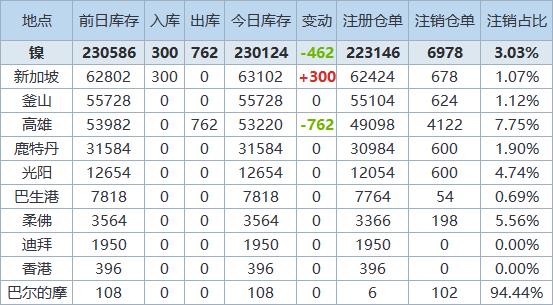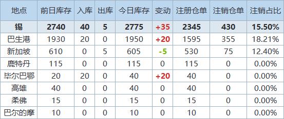 》查看更多金属库存信息