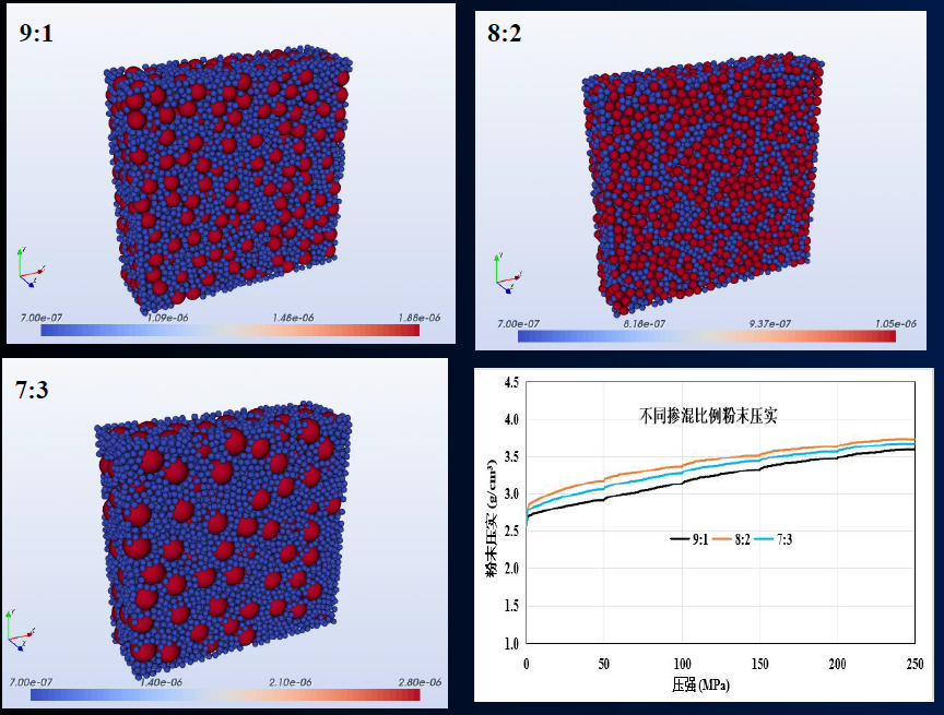 理论模拟与测试结果高度一致,在最佳级配下,材料压实密度最高。