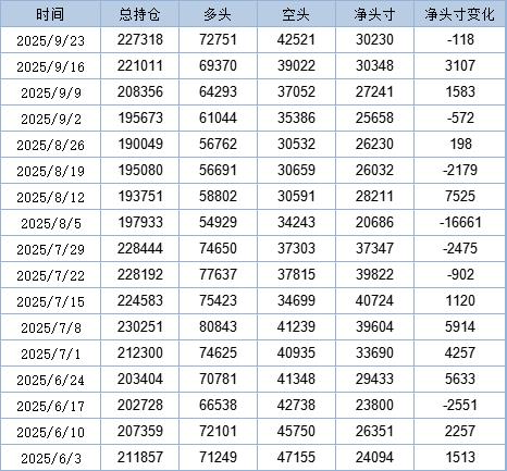 美联储议息会议如期小幅降息,但鲍威尔态度偏谨慎,铜价一度回落,基金多空力量都有增加。9月23日当周,基金多头仓位增至72751手,空头仓位同样增至42521手,总持仓四连增至227318手。不过最近铜市供应端干扰增加,期价重心明显上移。