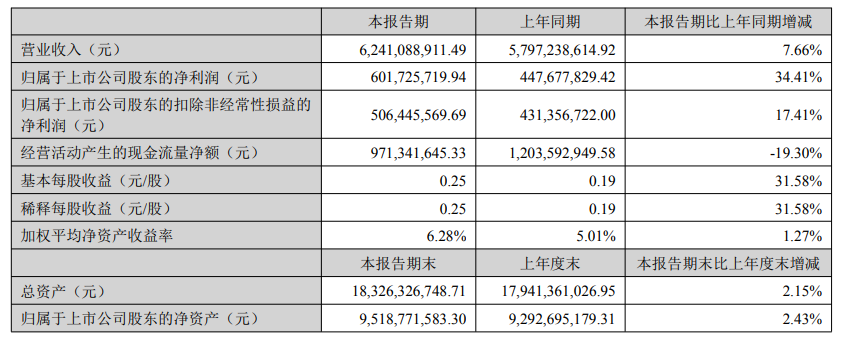 大洋电机8月26日披露2025年半年度报告显示:2025年上半年,面对复杂严峻的国内外经济形势,公司实现了营业收入稳健增长与盈利能力持续提升,并双双创下历史同期新高,充分彰显了公司稳健的经营策略和良好的抗风险能力。公司实现营业总收入62.41亿元,同比增长7.66%;归母净利润6.02亿元,同比增长34.41%。上半年,公司营业收入与上年同期相比增加44,385.03 万元,增加幅度为7.66%,主要原因系报告期内公司建筑及家居用电机业务板块、传统起动机及发电机业务板块及新能源车辆动力总成系统业务板块的销售收入均取得一定的增幅。