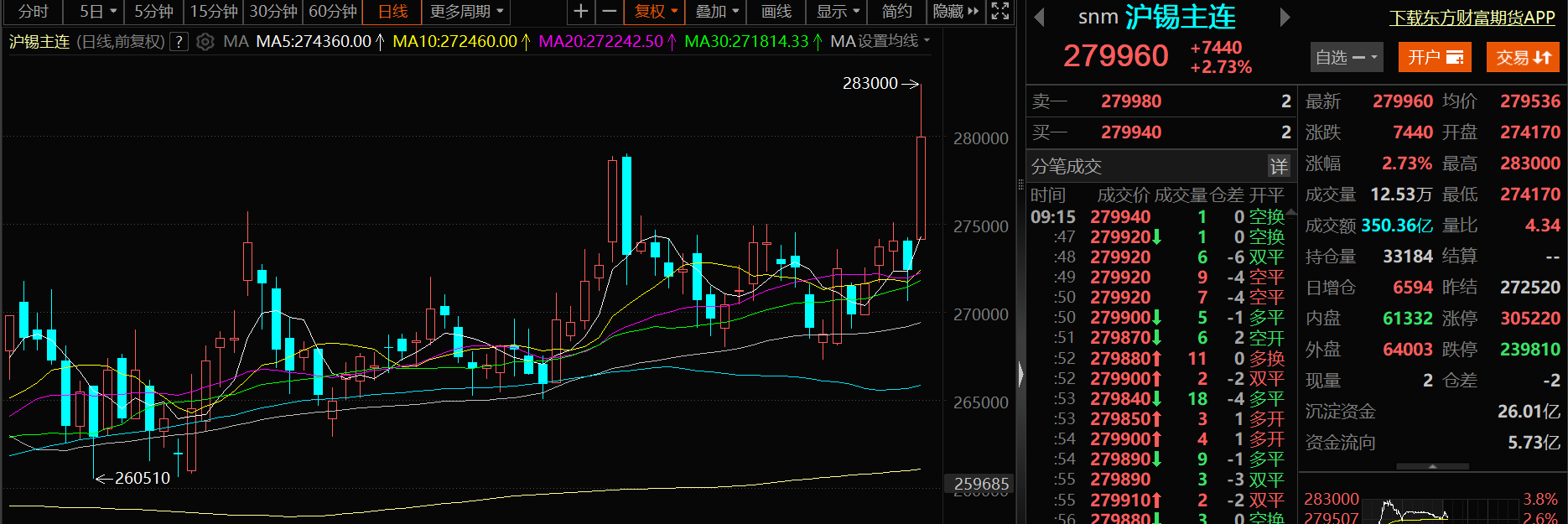 (截至9月30日9:16分,沪锡主力合约行情走势)
