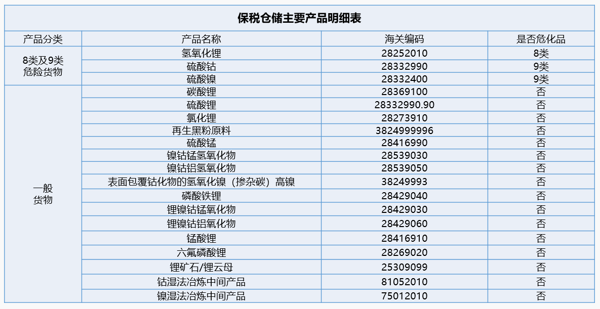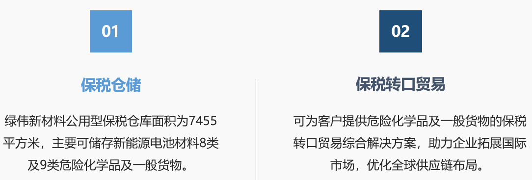 绿伟新材料保税业务主要为新能源电池材料产业客户提供安全、高效、便捷的保税仓储、转口贸易、物流、清报关等“一站式”交易服务。
