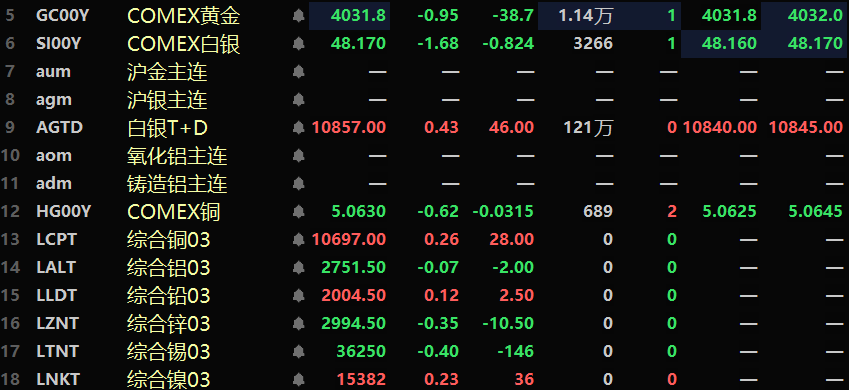 双节假期期间,COMEX贵金属均上涨,其中,COMEX黄金假期期间累计涨4.45%,盘中刷新历史新高至4081美元/盎司;COMEX白银假期期间累计涨3.42%,盘中刷新历史新高至49.195美元/盎司。