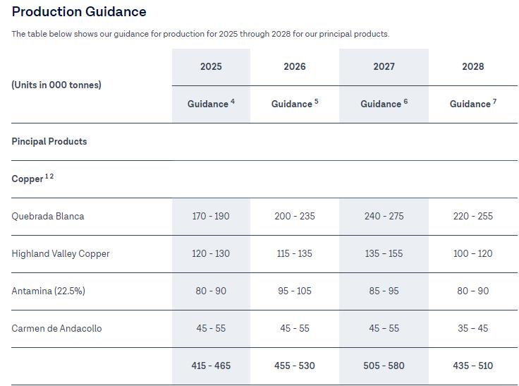 加拿大矿商泰克资源有限公司(Teck Resources Limited)周三在完成全公司运营审查及与英美资源集团的合并后,下调其智利旗舰项目Quebrada Blanca矿2028年前的铜产量指导。