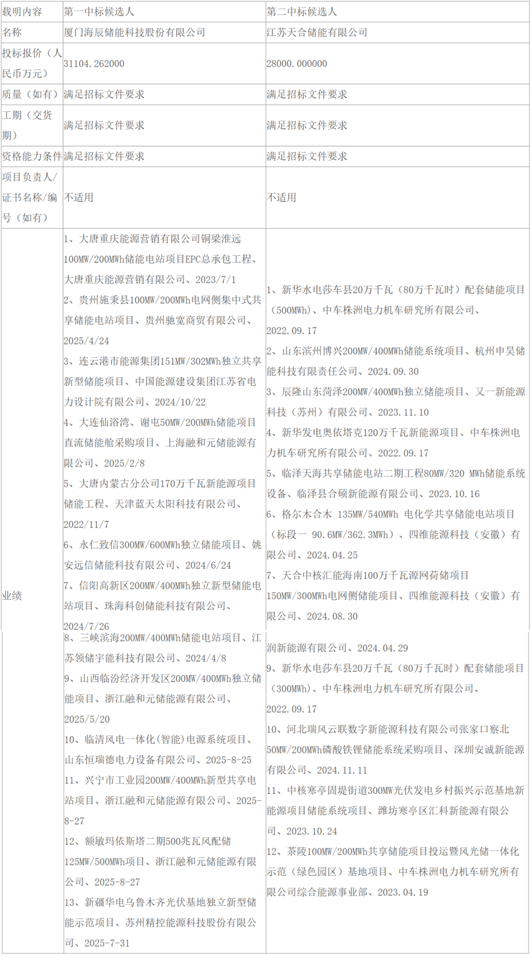 龙源电力龙源电力集团共享储能技术(北京)有限公司第五批储能电站储能液冷电池系统框架采购公开招标项目中标候选人公示