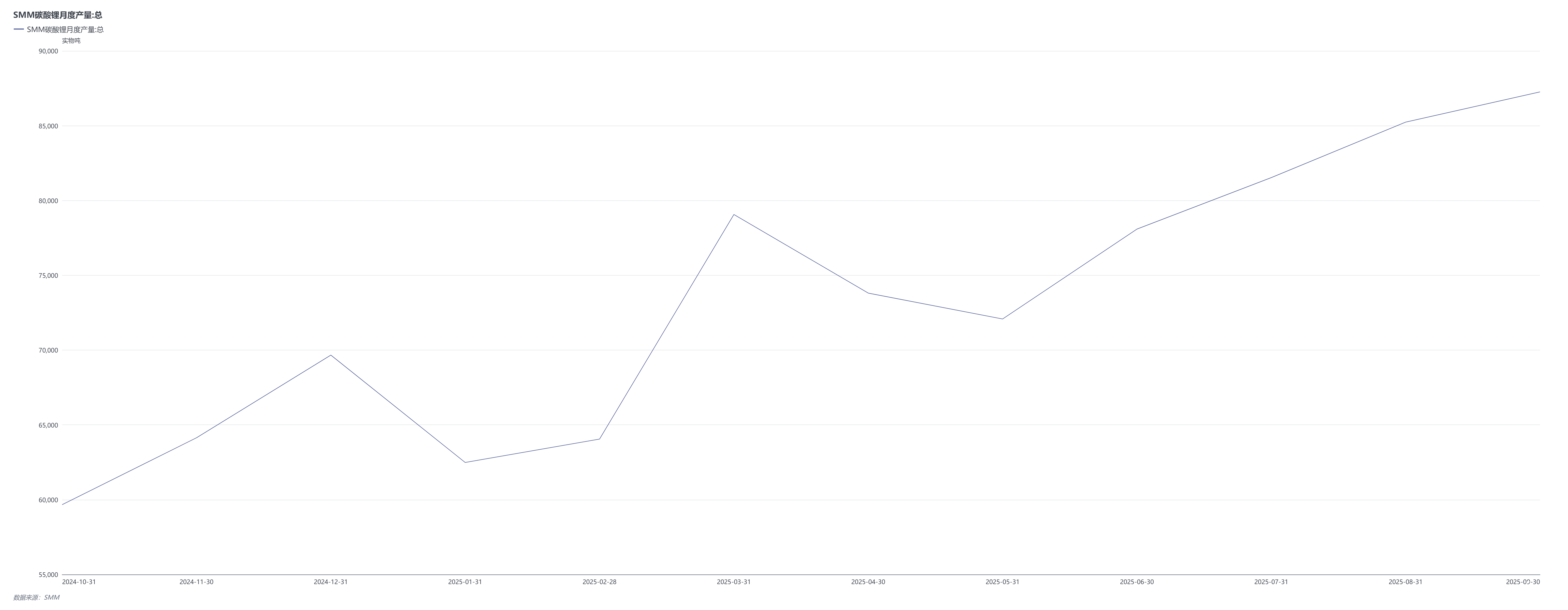 国内碳酸锂产量方面,自7月份国内碳酸锂月度产量首次突破8万吨大关以来,近几个月碳酸锂产量持续攀升,截至2025年9月份,国内碳酸锂月度总产量持续突破新高,环比增长2%,同比大幅增长52%。产量持续增长的主要驱动力仍来自于锂辉石端,非一体化锂盐企业代加工订单如火如荼。同时在下游需求持续向好的驱动下,行业整体供给能力也同步提升。