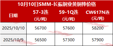 【SMM价格】2025年10月10日长振黄铜棒价格
