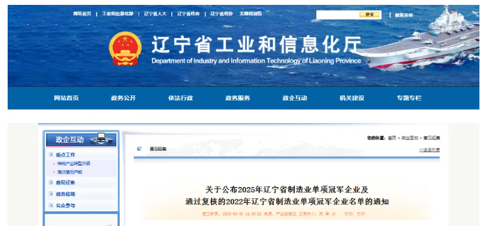 点击查看原文链接:》专精特新 | 关于公布2025年辽宁省制造业单项冠军企业及通过复核的2022年辽宁省制造业单项冠军企业名单的通知