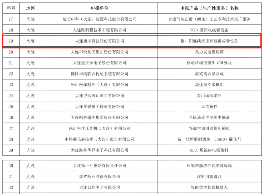 热烈祝贺大连康丰科技股份有限公司入选2025年辽宁省制造业单项冠军企业拟公示名单!