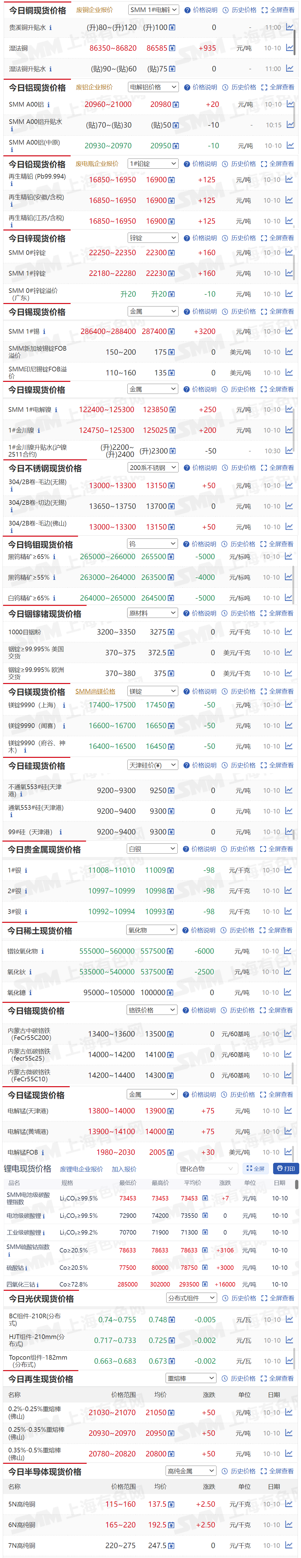 ►10月10日广东铜现货市场各时段升贴水(第四时段10:50)【SMM价格】