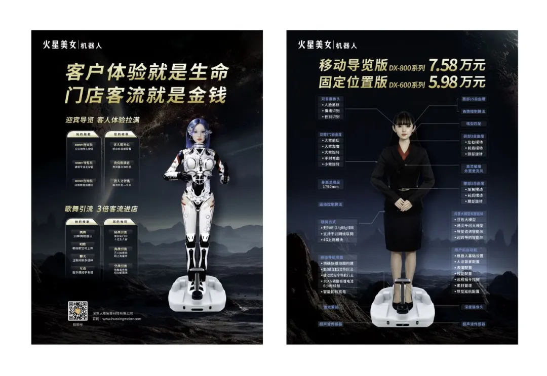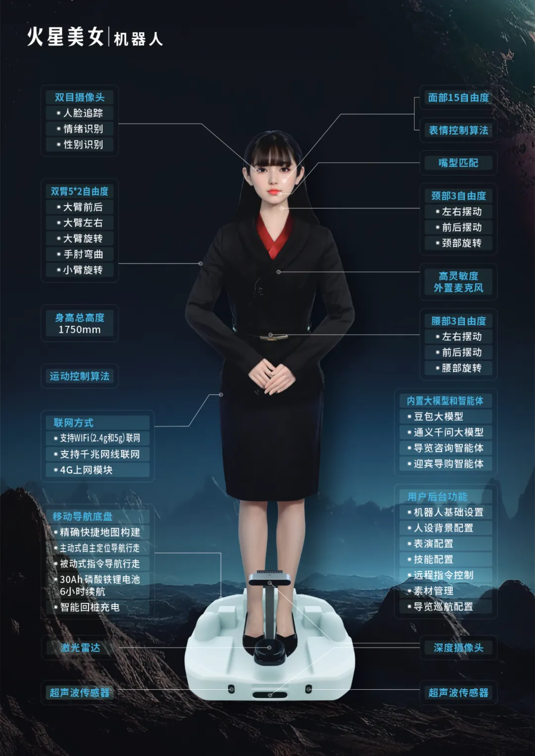 大象安泰从2020年开始,历时5年研发、投资数千万元,在2025年4月开始批量生产和销售火星美女仿真人形商用服务机器人。