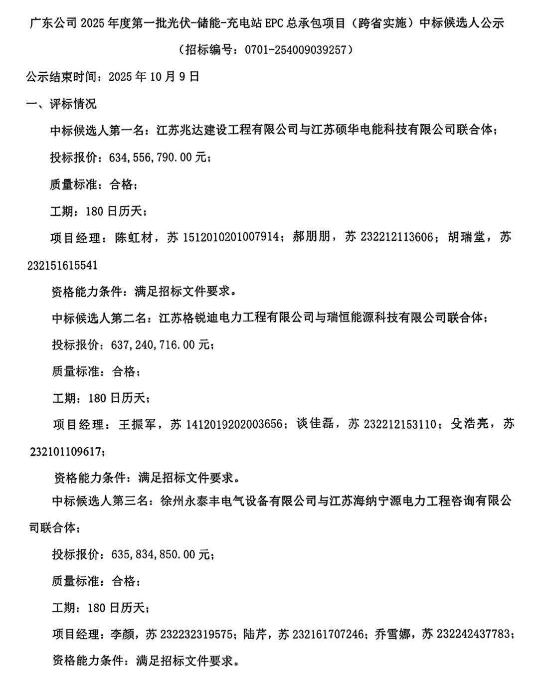 第一中标候选人为:江苏兆达建设工程有限公司、江苏硕华电能科技有限公司的联合体,投标报价63455.679万元;