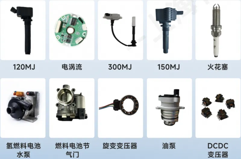 ·目前研发的电动汽车底盘零件有:油泵、DCDC变压器、旋位传感器、离合器线圈、电涡流传感器。