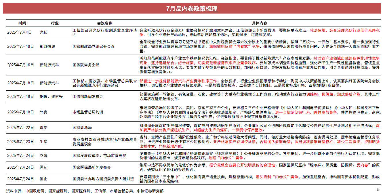 政治局会议使用大篇幅讨论反内卷,表明政策重视程度非常高;