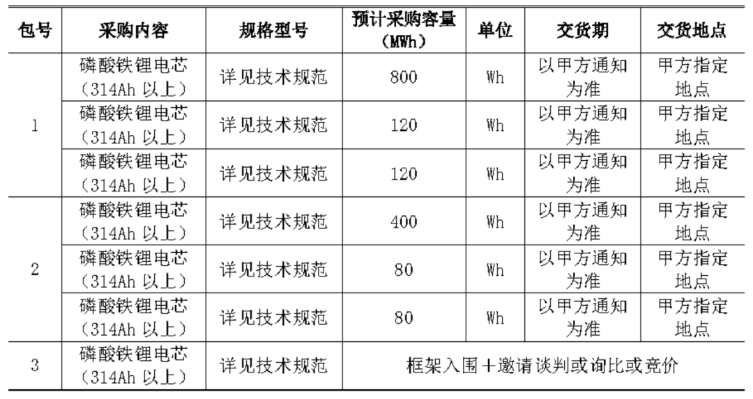 北极星储能网讯:9月30日,中国电气装备电工时代发布1.6GWh储能电芯集采需求,本次拟采购314Ah以上磷酸铁锂电芯,共分为3个标包,其中包1、包2采购规模分别为1040MWh和560MWh,标包三为框架入围+邀请谈判或询比价形式确定。