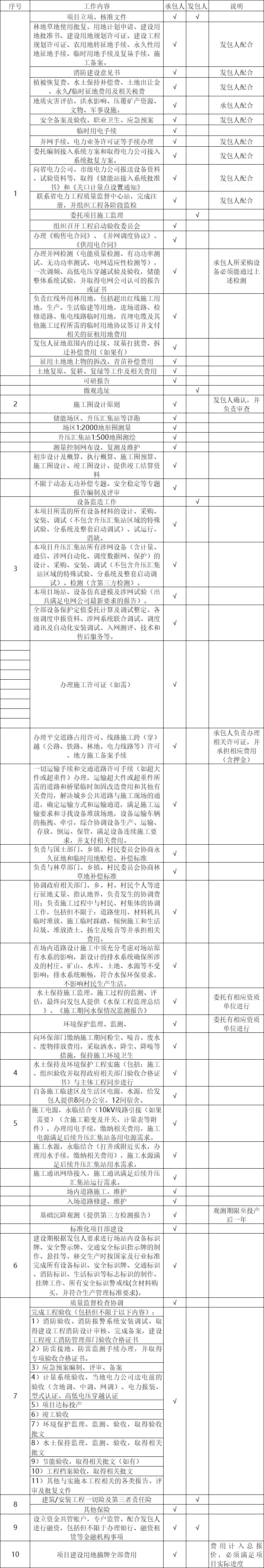 注:表格中未明确,但为保证本工程完整性所不可或缺的工作全部由承包人承担。