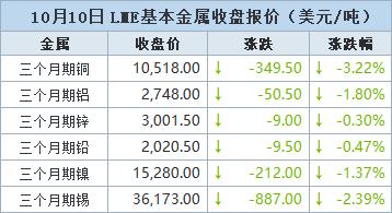 10月10日(周五),伦敦金属交易所(LME)铜价下跌,因市场担心全球贸易紧张局势升级。