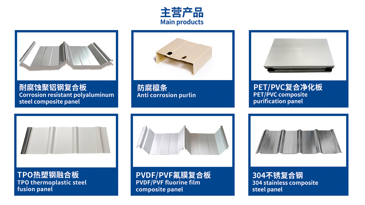 鑫宏华耐腐蚀复合材料---适用于:镀锌、电镀、化工、冶炼、陶瓷、光伏、养殖及沿海盐碱等腐蚀行业和地区。产品以优异的抗腐蚀特性,独有的隔热降温功能,结合板边封闭专利技术。成倍提高钢构屋面和墙面板的使用寿命,改善工作环境,深受广大用户的青睐。