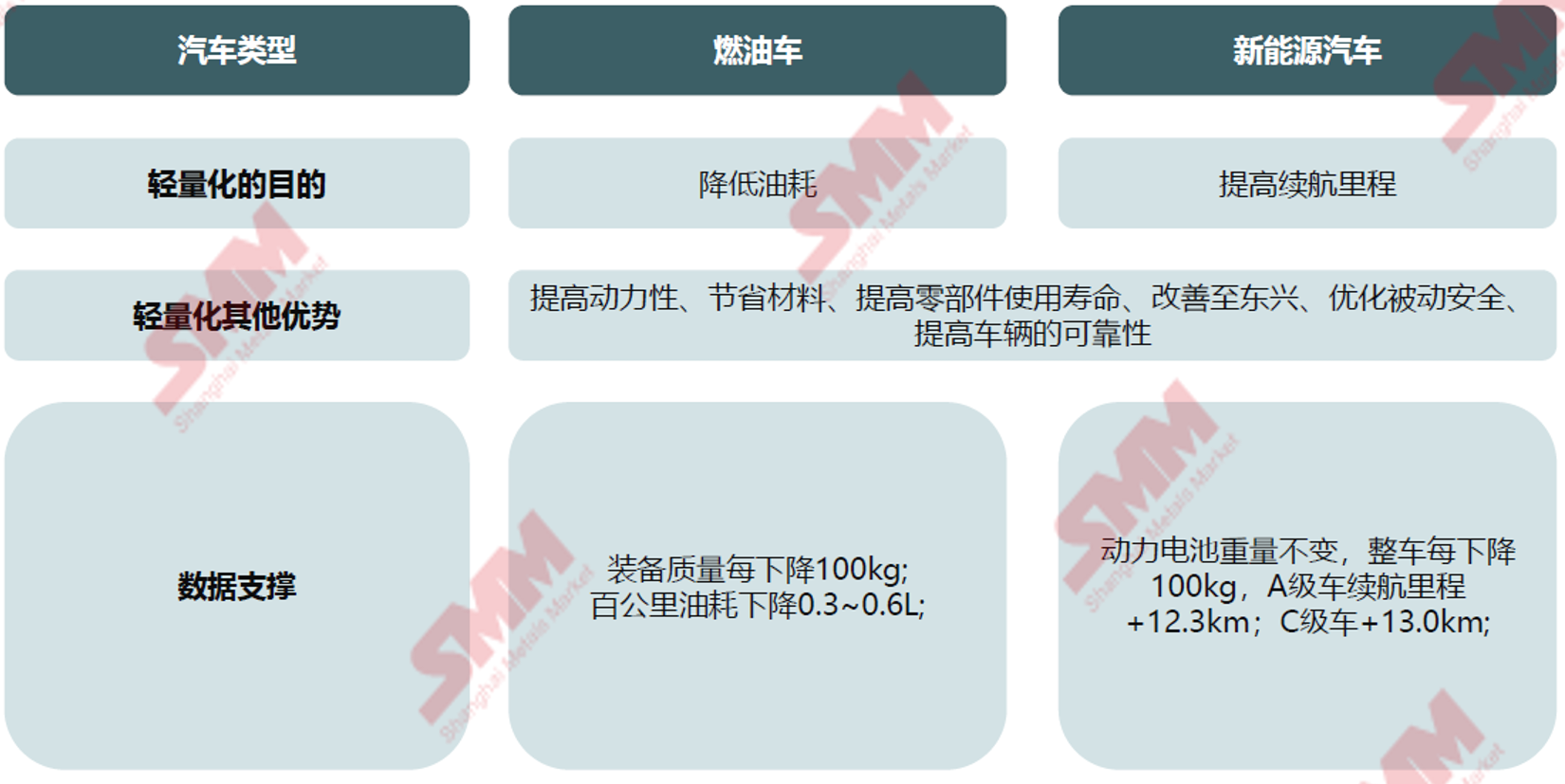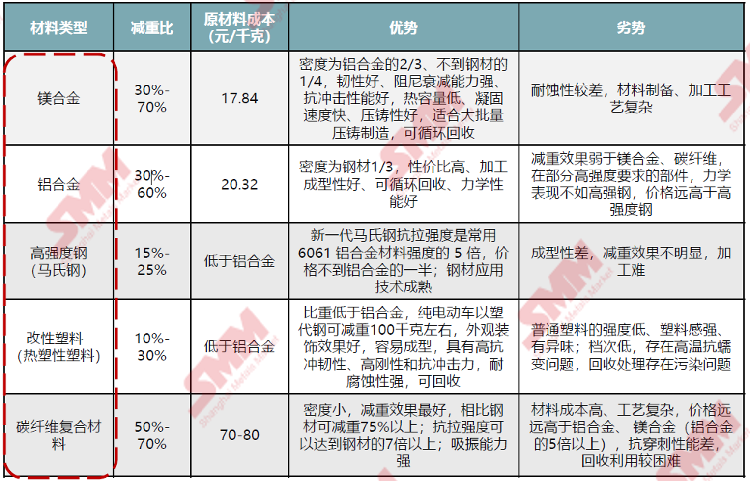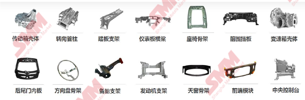 据SMM了解,镁合金在汽车仪表盘、脚踏板、轮毂等零部件上的减重比例确实较高;