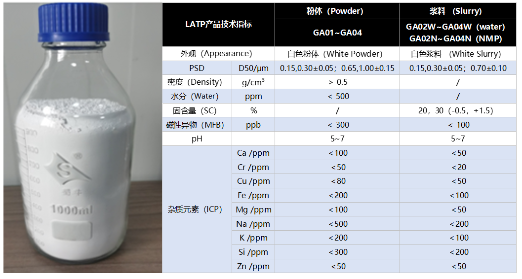 氧化物电解质LATP产品照片及技术指标