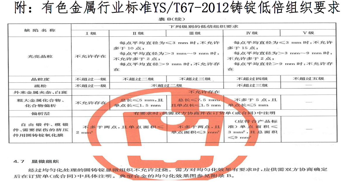1、检验标准参照中华人民共和国有色金属行业标准《变形铝及铝合金圆铸锭》YS/T67-2018