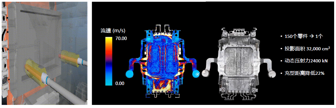 超大型压铸装备:匹配三段式下车身零件:前舱、后地板、电池托盘
