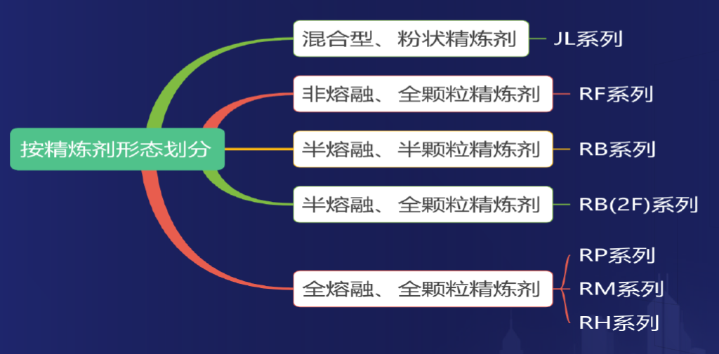 一种精炼剂通用于各种不同成份、不同产品质量要求、不同的工艺环境的生产过程中。