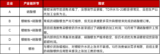 银锭升水传导和硝酸银开工方面,SMM对部分企业简要访谈后整理如下: