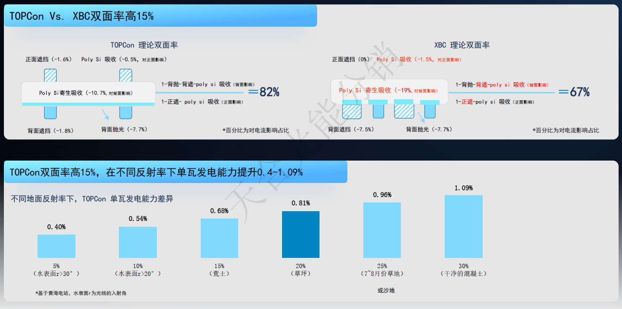 TOPCon 优势:双面率高15%,单瓦发电能力高