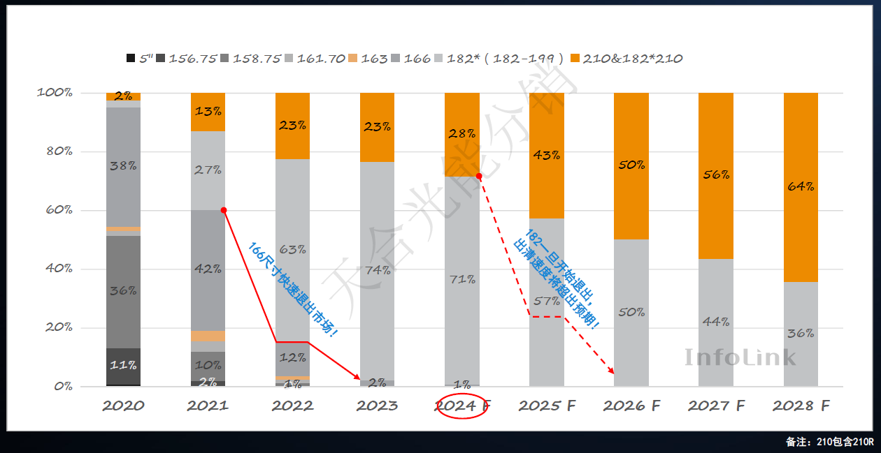 2020-2024年 210(含210R)各家累计出货~380GW,天合累计170G @ 45%