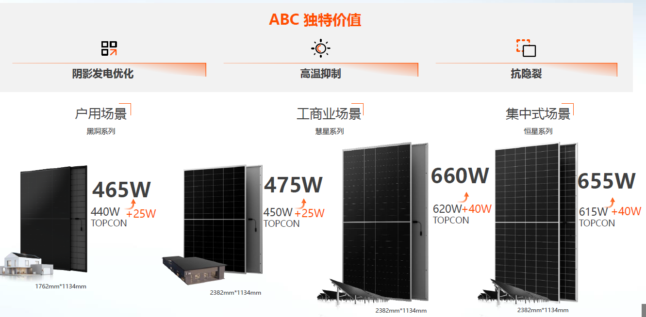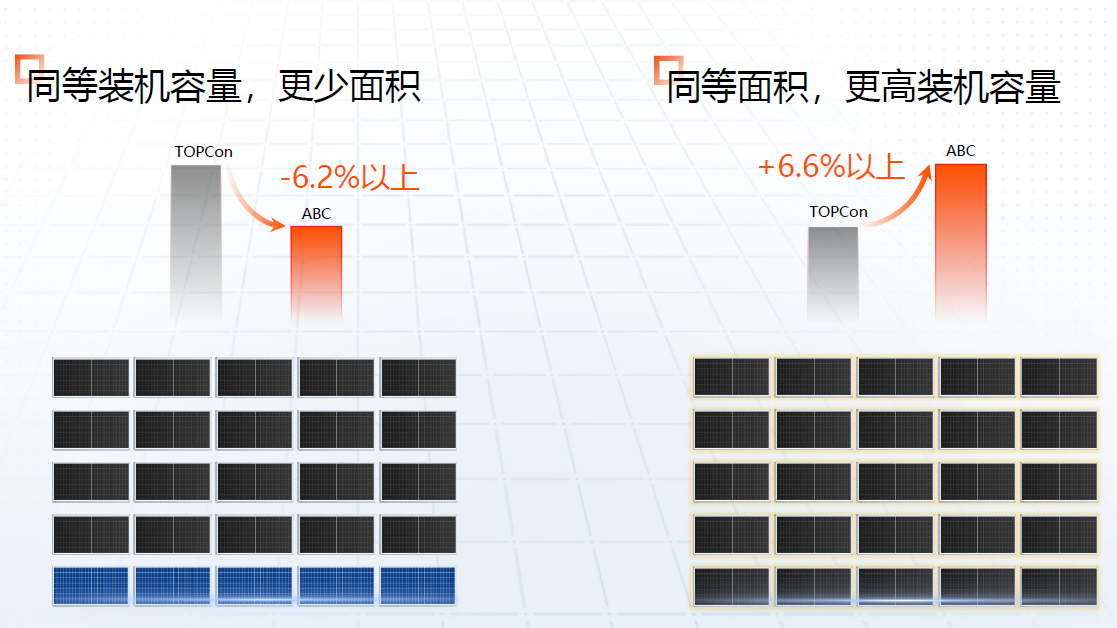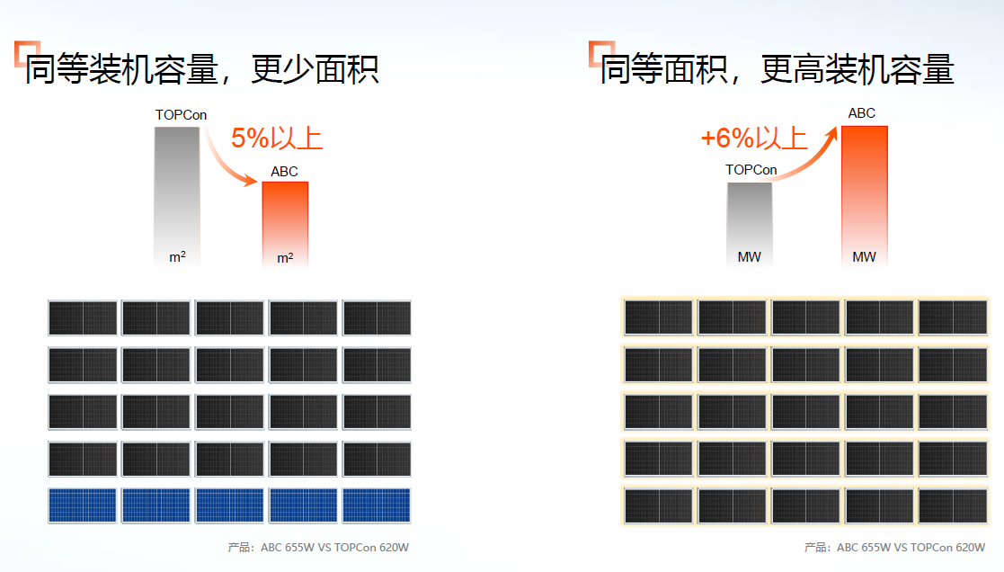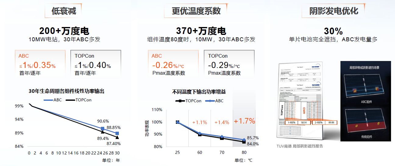 单片电池片完全遮挡ABC比TOPCon30% 发电量多。