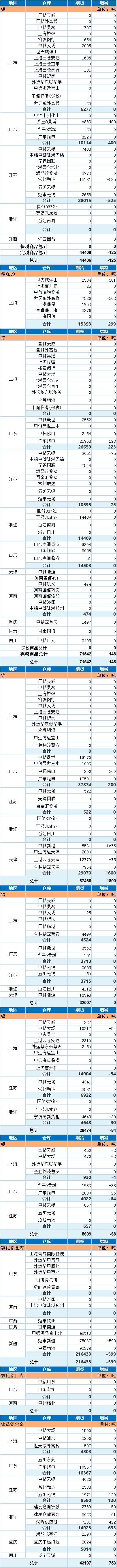 10月16日上海期货交易所金属库存日报
