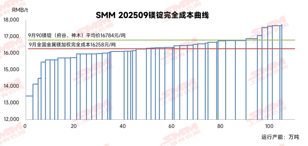进入2025年10月,金属镁冶炼成本预计窄幅震荡,能源成本预计回升,原材料成本预计持稳,人工成本预计下降。综合来看,SMM预计2025年10月国内金属镁行业含税完全成本平均值在16000-16,500元/吨附近。