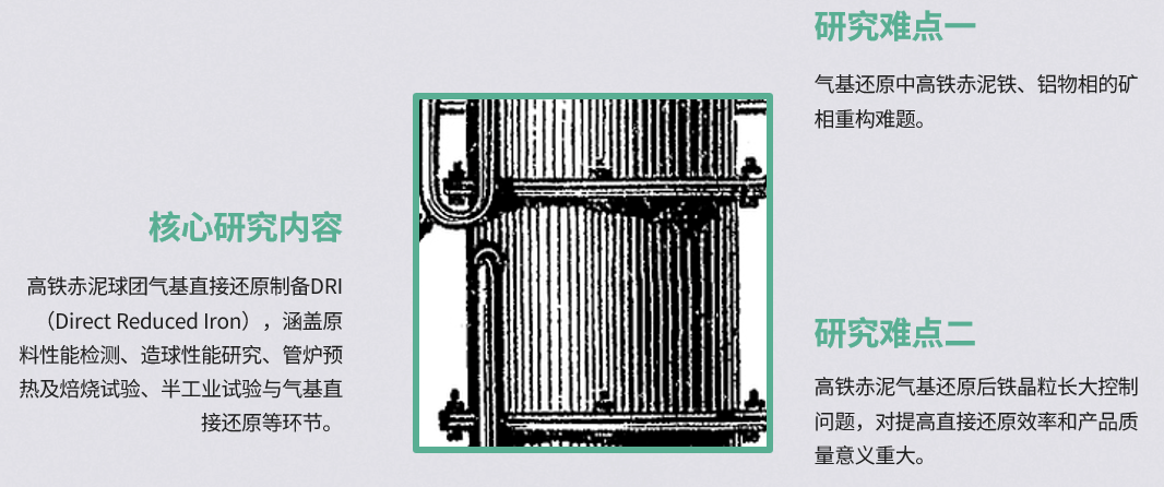 高铁赤泥在特定气氛(如CO、H2、C还原物质及适宜温度)下,通过物化反应获取还原生铁。