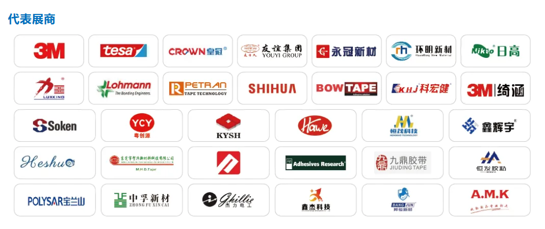 展品范围:电子胶带、纸基胶带、布基胶带、薄膜胶带、特氟龙胶带、包装胶带、工业胶带、医用胶带、半导体胶带、汽车胶带、电器胶带、办公胶带、建筑胶带等。