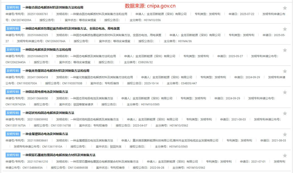 (金龙羽固态电池专利汇总)