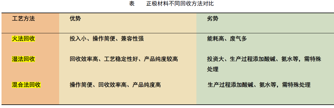回收冶炼方式:包括火法冶金、湿法冶金以及混合再生等。