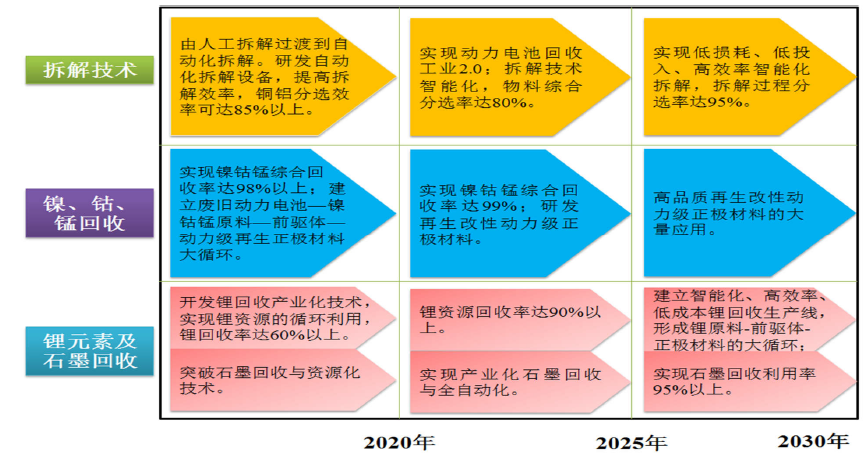 (5)动力电池由于体积较大,剩余容量较多,回收时可以建立废旧锂离子动力电池的评价标准,将部分电池挑选出来,用于储能等对领域,实现废旧动力电池的梯次利用。