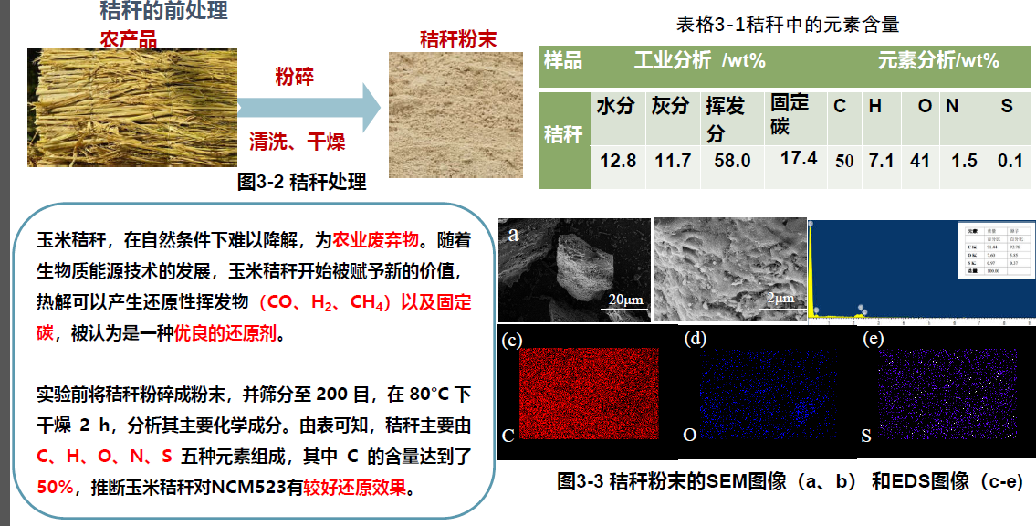 3.2 生物质秸秆与废旧NCM523材料的预处理工艺