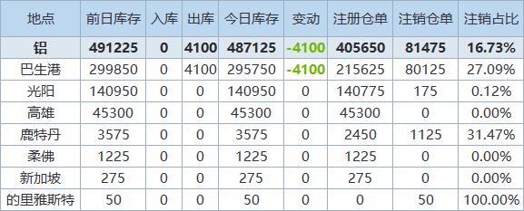 10月17日LME金属库存及注销仓单数据