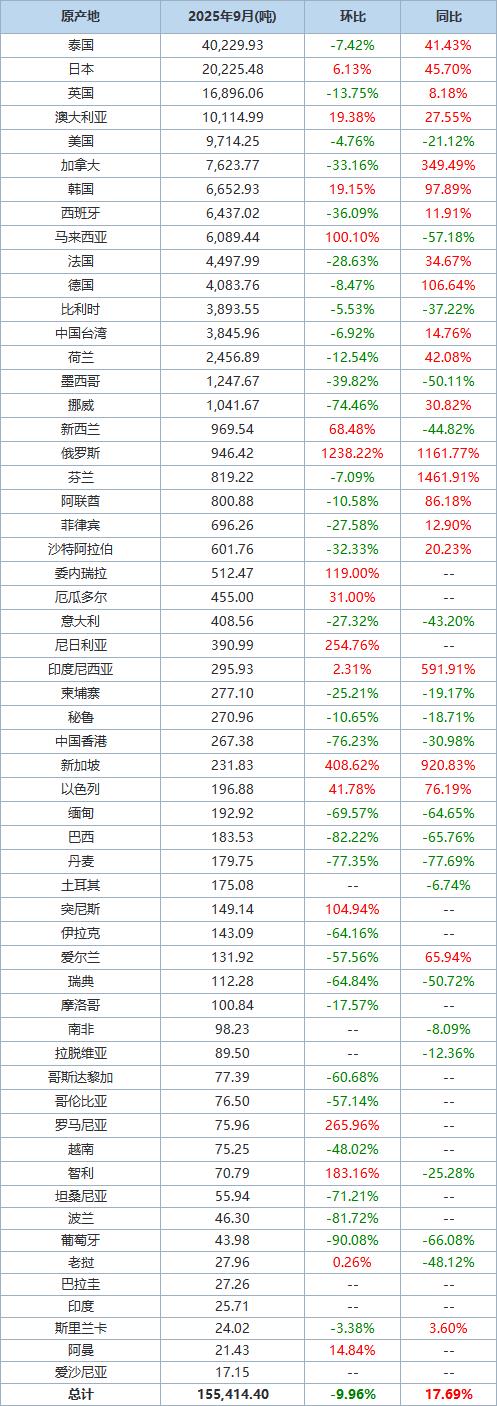 注:进口/出口总量(总计)中亦包括上表未列出的部分原产地数据
