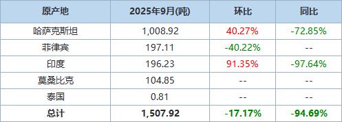 以下为根据中国海关总署官网数据整理的2025年9月精炼铅进口分项数据一览表: