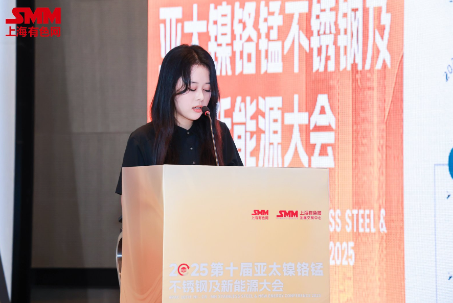 10月21日,在由上海有色网信息科技股份有限公司(SMM)主办的2025第十届亚太镍铬锰不锈钢及新能源大会上,SMM资深镍行业研究分析师杨涟婷对“全球不锈钢市场:供需预测与材料替代性分析”这一主题进行了论述。