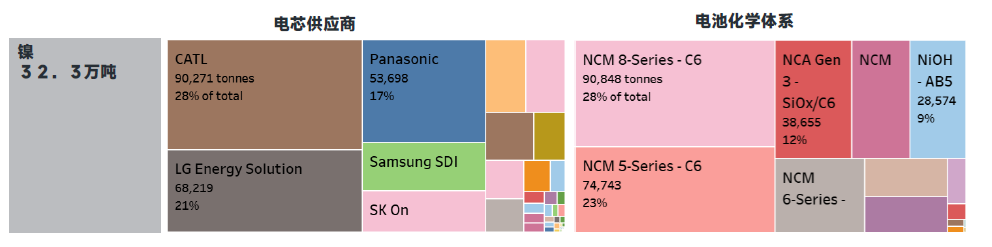 全球电池供应商与化学体系镍用量:2024年