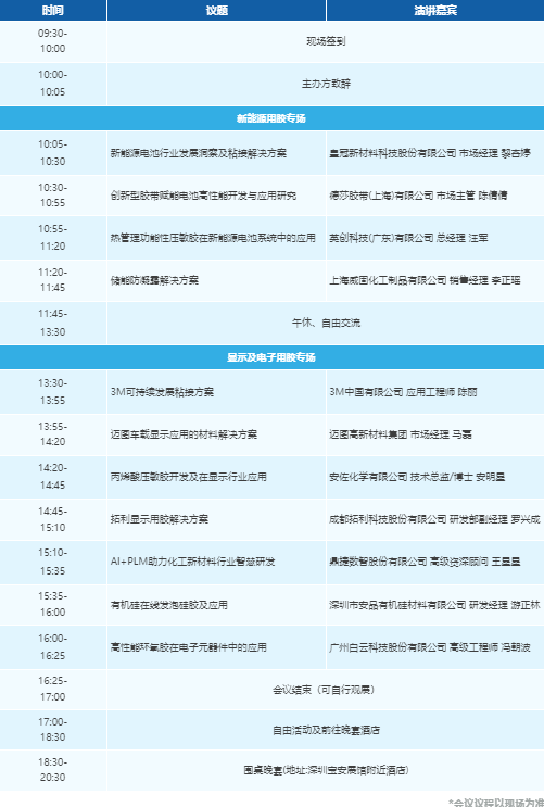2、2025(第六届)新兴市场用胶粘材料创新发展论坛:针对一些传统的、中低端以及相对成熟的应用市场成为竞争激烈、利润空间有限的红海市场的现状,为引导和推进中国胶企加速培育、开拓新兴用胶市场以及加速攻关粘接技术中的热点难点问题,分享适配新能源、新型显示等新兴市场的产品创新技术与市场开拓策略,帮助企业拓展新兴市场份额。