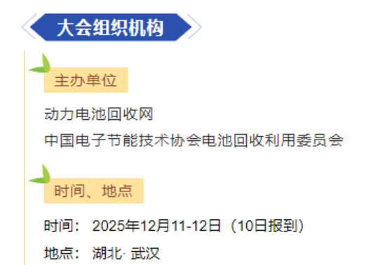 废旧锂电池回收利用行业发展与市场解析 2026 电池材料市场供需分析与展望 废旧磷酸铁锂电池(LFP)高质回收利用技术发展 废旧三元锂电池高效资源再生技术与装备发展 废旧锂电池极片直接修复与再修复技术进展 退役动力电池梯次利用高效分选、重组技术; 新政下废旧锂电池、再生黑粉进口规范操作与通关验收 锂渣高值化综合利用与梯级分离技术进展 新技术、新人才与“电池循环利用工程师”职业技能培训 低能耗、高回收率提锂工艺技术(锂矿石、盐湖卤水、含锂废弃物等) 电动商用车(大巴、重卡、矿山)退役电池回收市场合作模式与电池换新机遇 退役动力电池回收利用行业高端闭门会议(特定邀请参加)